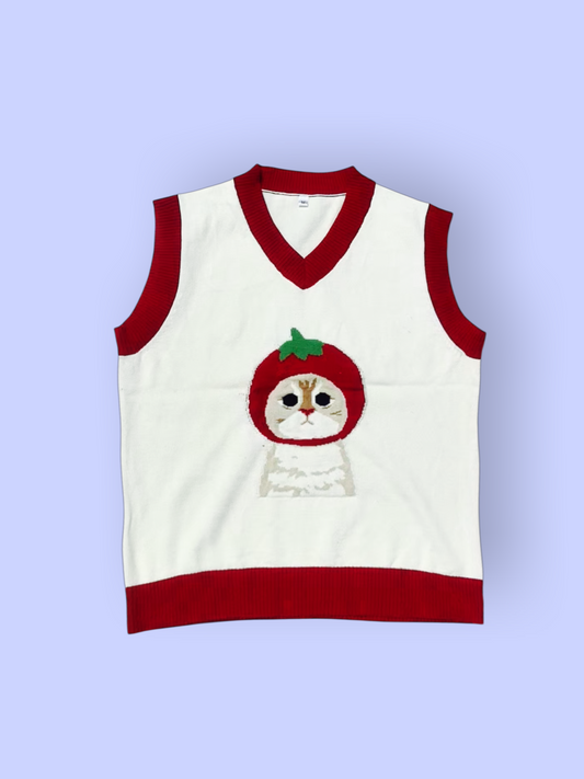 100% Cotton Knit – Tomato Cat Sweater Vest