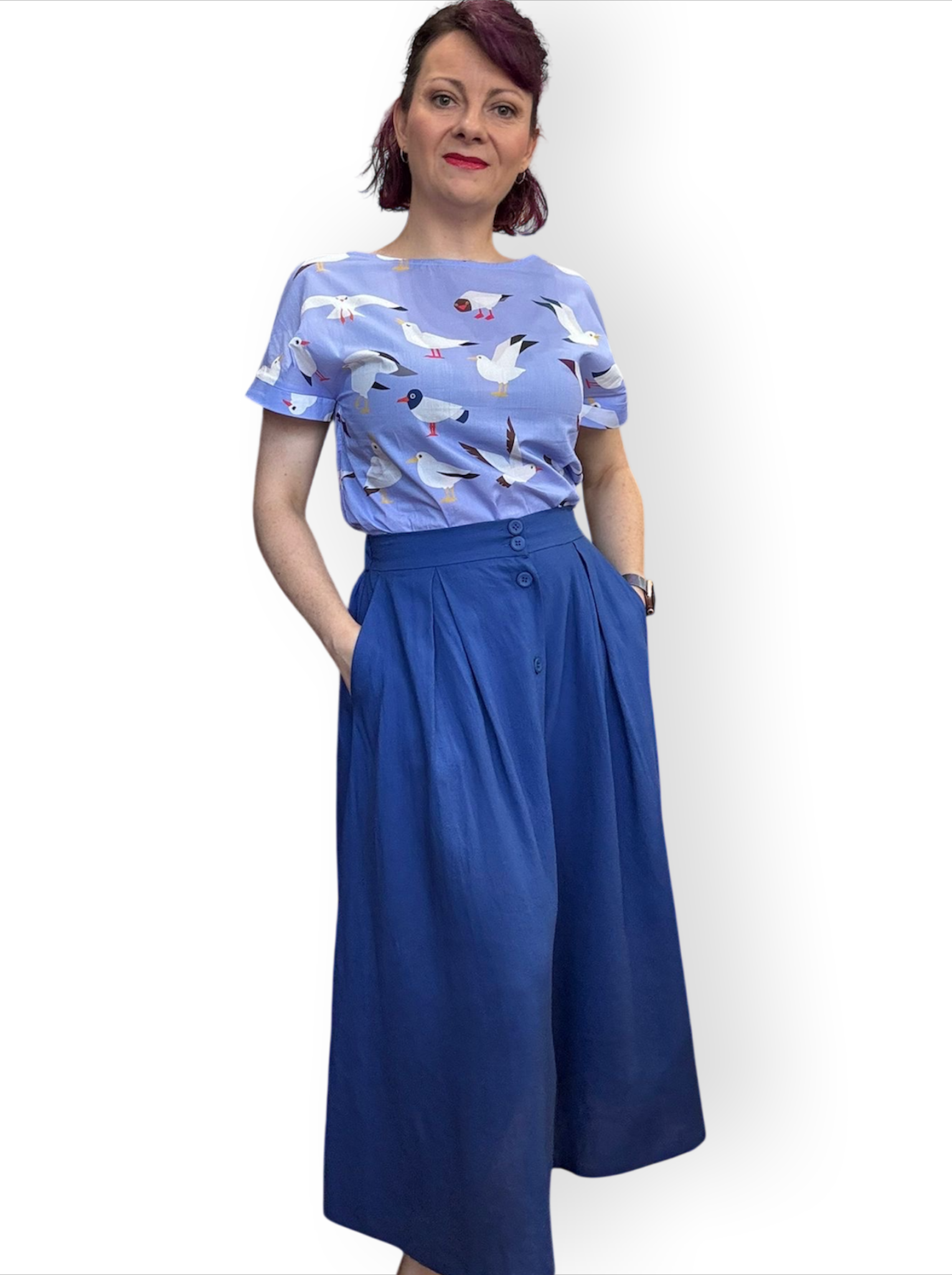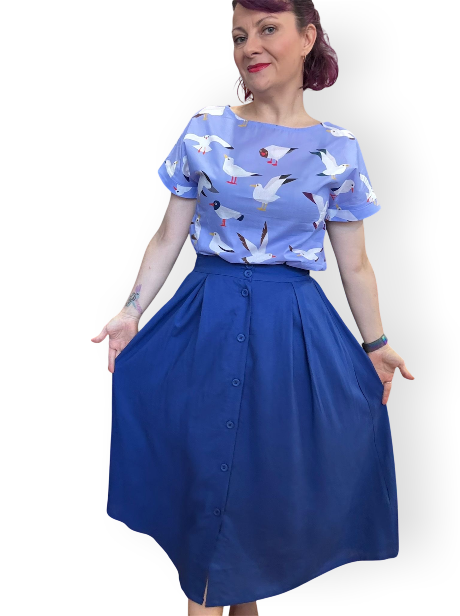 The Ashley skirt features a front button closure, an elasticated waist for comfort, and practical pockets.