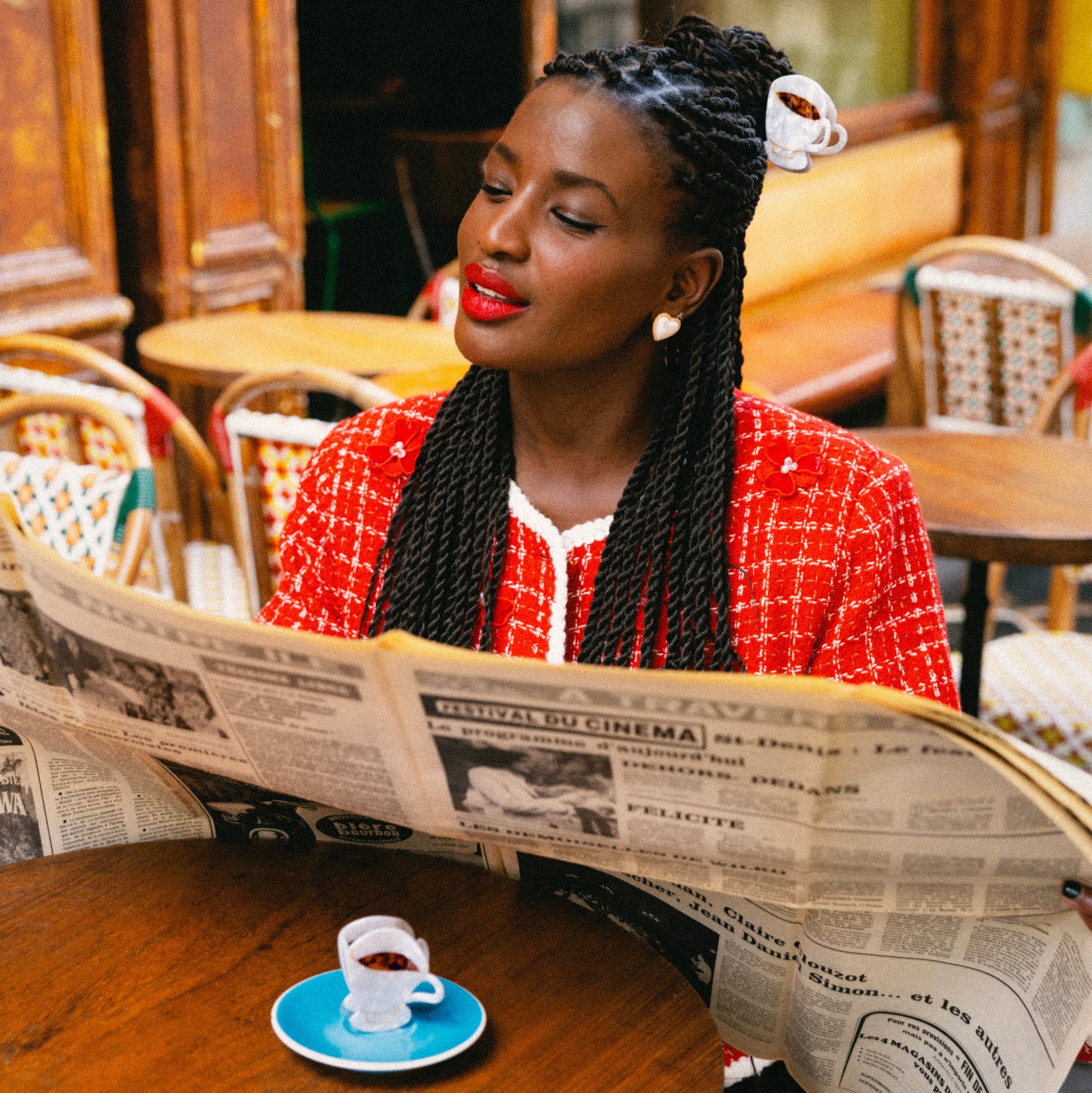 What could be more French than a cup of coffee, as a tribute to the strong Espresso enjoyed at dawn leaning against the counter of the brasserie, or the tasty latte at Grandma’s with a good slice of cake. We love the hair claw clip version, which brings out the best in all our looks!
