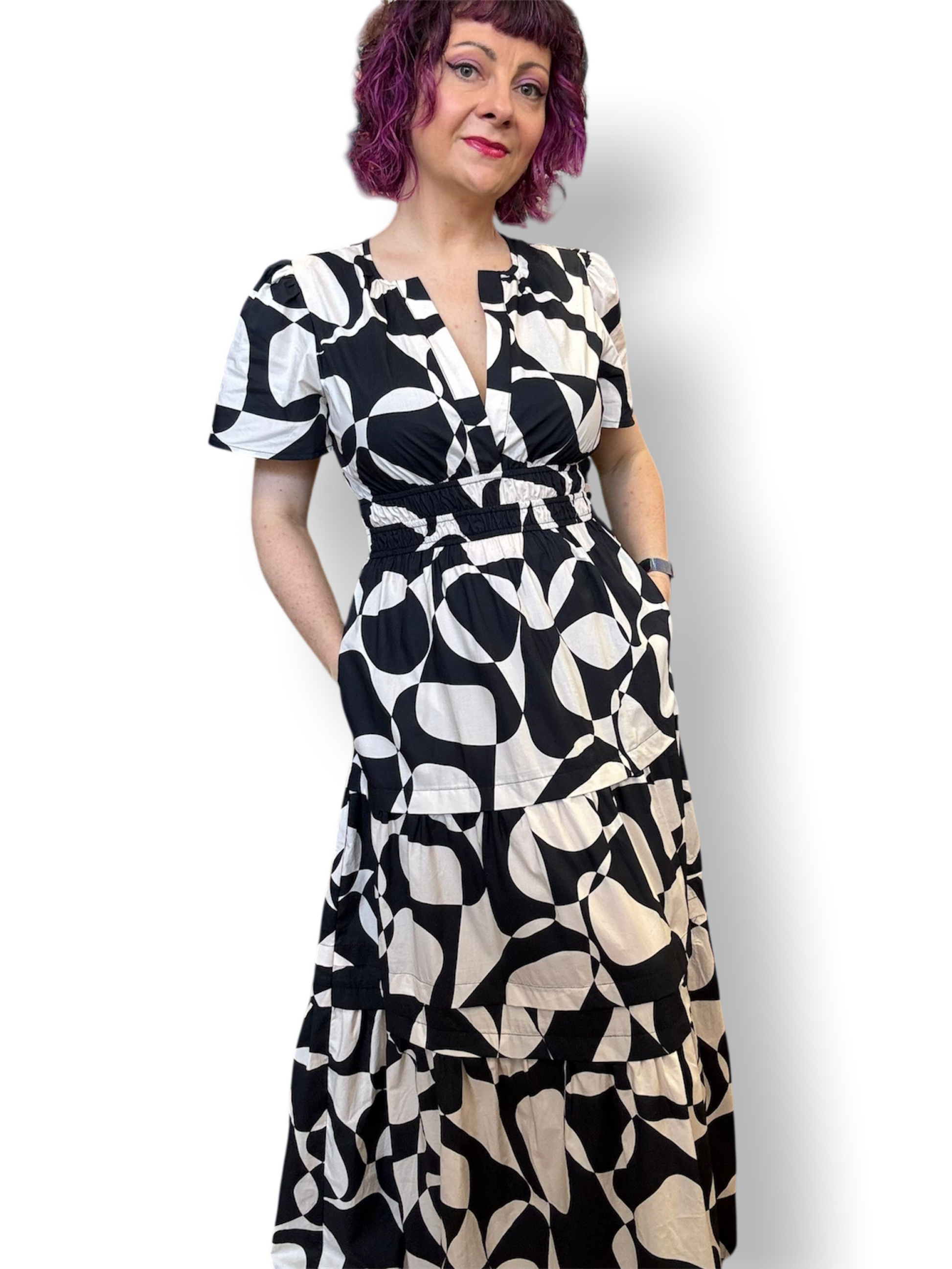 The Hanna Maxi Smock Dress blends elegance with comfort, making it ideal for spring and summer occasions. Made from lightweight, breathable cotton, this maxi dress features a flattering V-neckline and short sleeves with softly gathered hems at the shoulders for added charm. The elastic gathered waist offers a comfortable, figure-flattering silhouette, while two side pockets provide everyday practicality. Effortlessly stylish, this dress combines timeless design with functional ease.