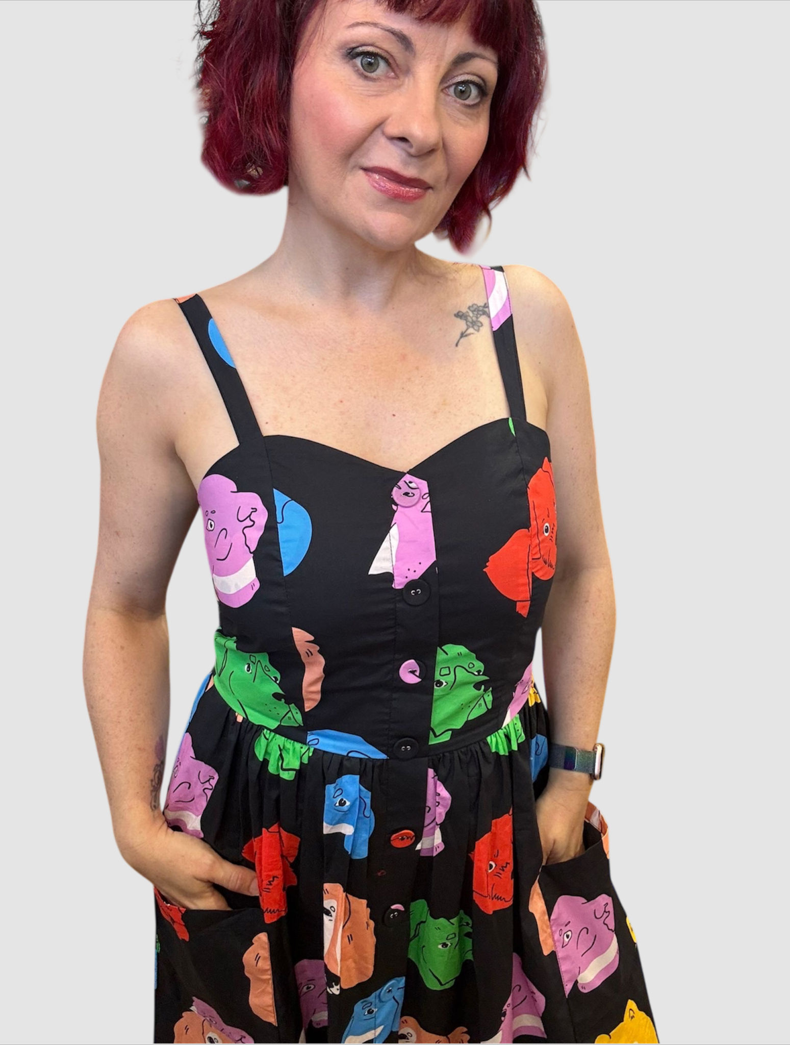 Penelope is a 100% cotton faux button-up dress, beautifully gathered and thoughtfully detailed with adjustable straps, patch pockets, a shirred elastic back, faux buttons, and a discreet side zip. Effortless and comfortable, it’s the perfect choice for a seaside picnic or a relaxed day of shopping.