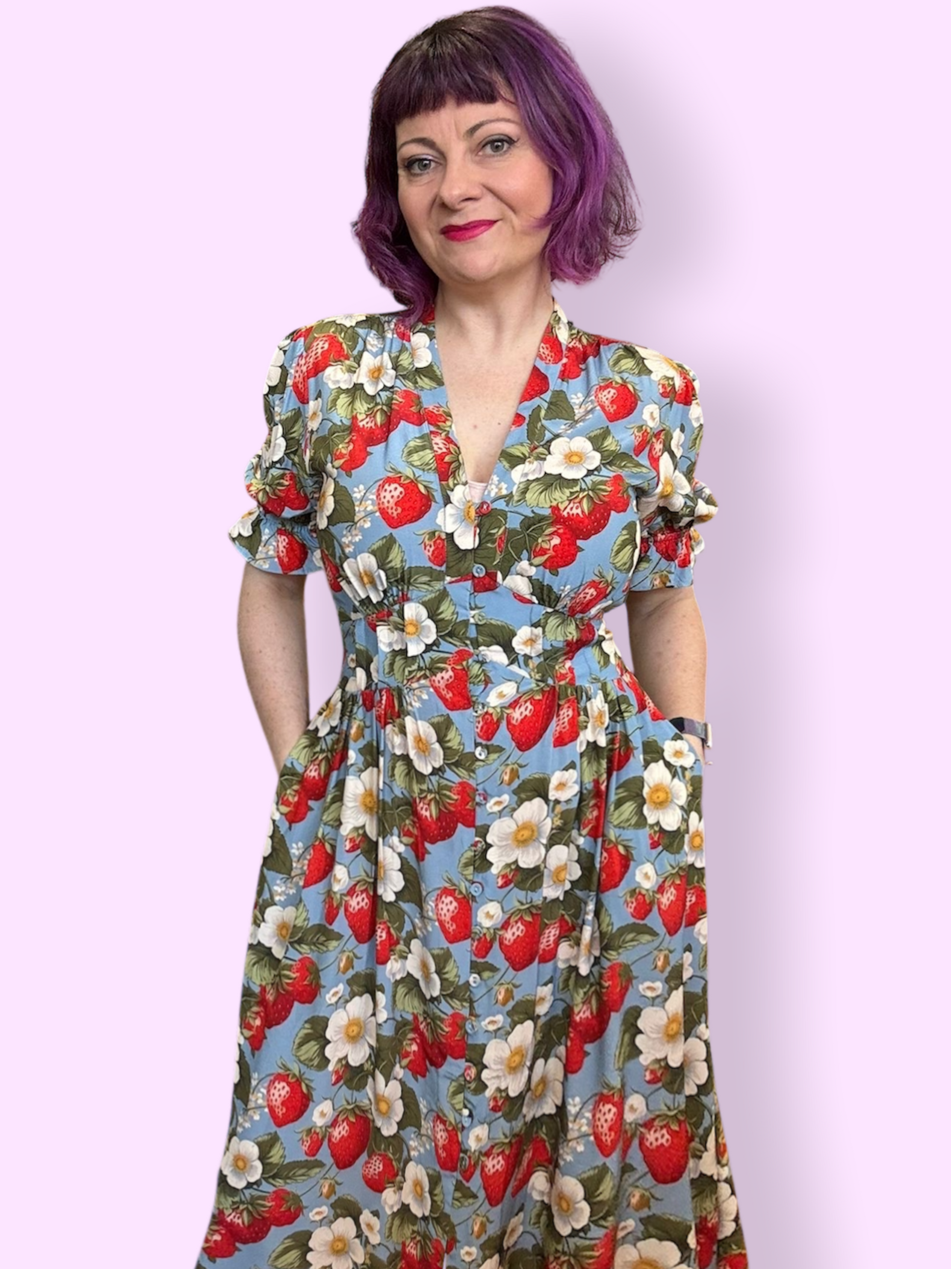 The Phoebe Dress is a charming and versatile piece that exudes style. Crafted from 100% Viscose fabric, it features an elastic back for a comfortable fit. Fabric cover buttons adorn the front, while the V-neck and midi length enhance its elegant appeal. With elastic puff half sleeves and practical pockets, it effortlessly combines playfulness and functionality. Whether dressed up with boots or styled casually with flat sandals, the Phoebe Dress is a chic choice for any occasion.